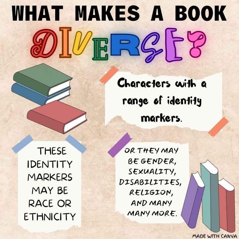 Diverse representation in books allows for members of minority groups–especially kids–to see themselves represented authentically, with written characters and interactions that reflect their own. It also lets people whose identities lie outside of those groups to connect with, empathize, and educate themselves about people different from themselves. Diverse media in general, but especially diverse literature helps provide, as the National Education Association put it, windows or mirrors. Mirrors are there for people to see in others the identity and lifestyle they see in themselves and the people around them. Windows are there for outsiders to see in others what they don’t see in themselves. These two practices help build empathy, understanding, and awareness for people who don’t share your race, ethnicity, religion, gender, sexuality, or socio-economic status.